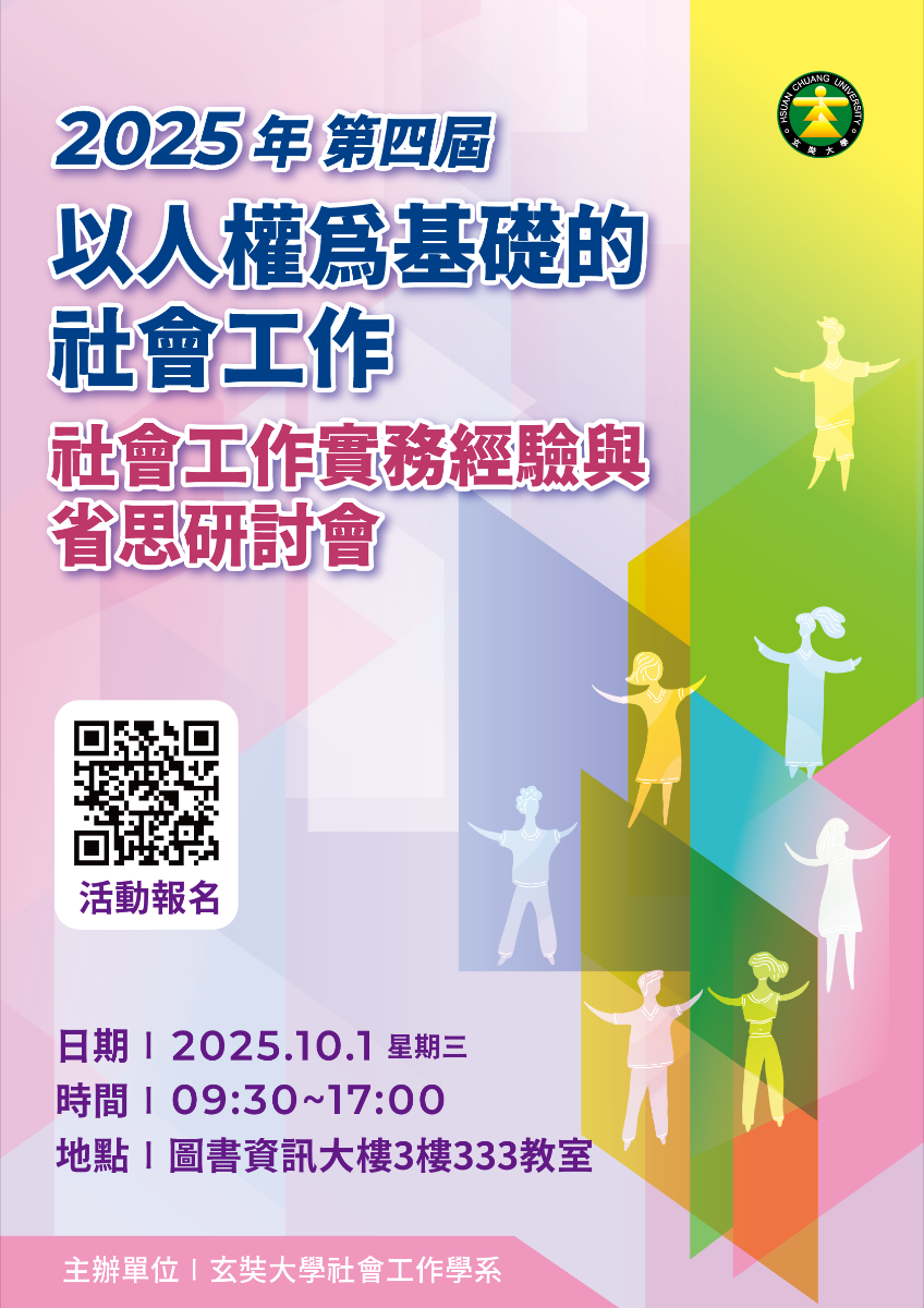 主旨:本校社會工作學系訂於114年10月1日辦理2025年第四屆 「以人權為基礎的社會工作」:社會工作實務經驗與省思學術研討會,請惠予公告並鼓勵所屬踴躍參加。