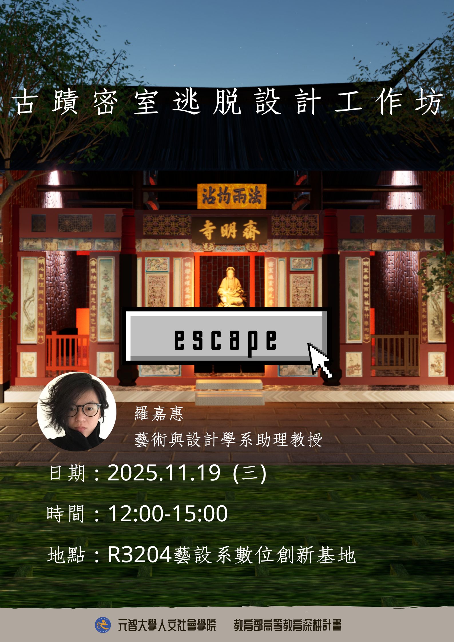 古蹟密室逃脫設計工作坊-AI工作坊(可擇一認列職涯發展633活動或多元學習護照時數)