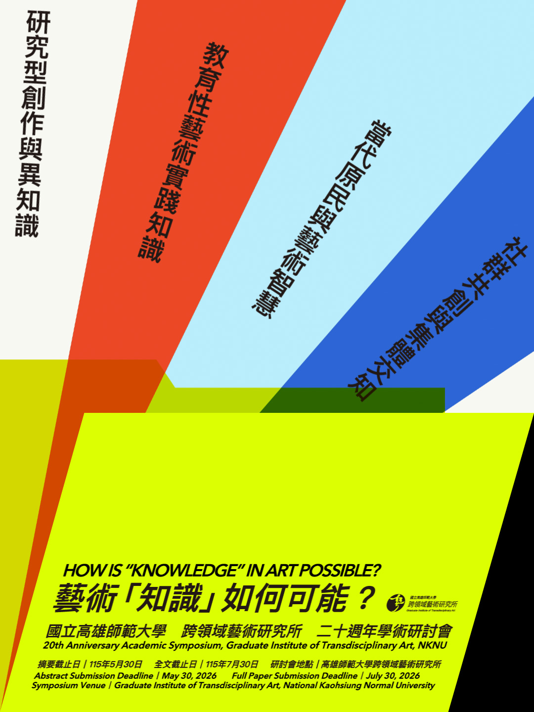 一、適逢該所創立二十週年,旨揭研討會以過往之藝術社會實踐為基礎,透過社群連結、議題介入、教育行動、媒體實驗與田野研究等多樣化實踐,探問「藝術『知識』如何可能?」並關注當代知識資訊化、碎片化脈絡中,藝術之 「知識生產」所具備之能動性與特徵,以及藝術如何開展新的認識論與社會實踐之路。