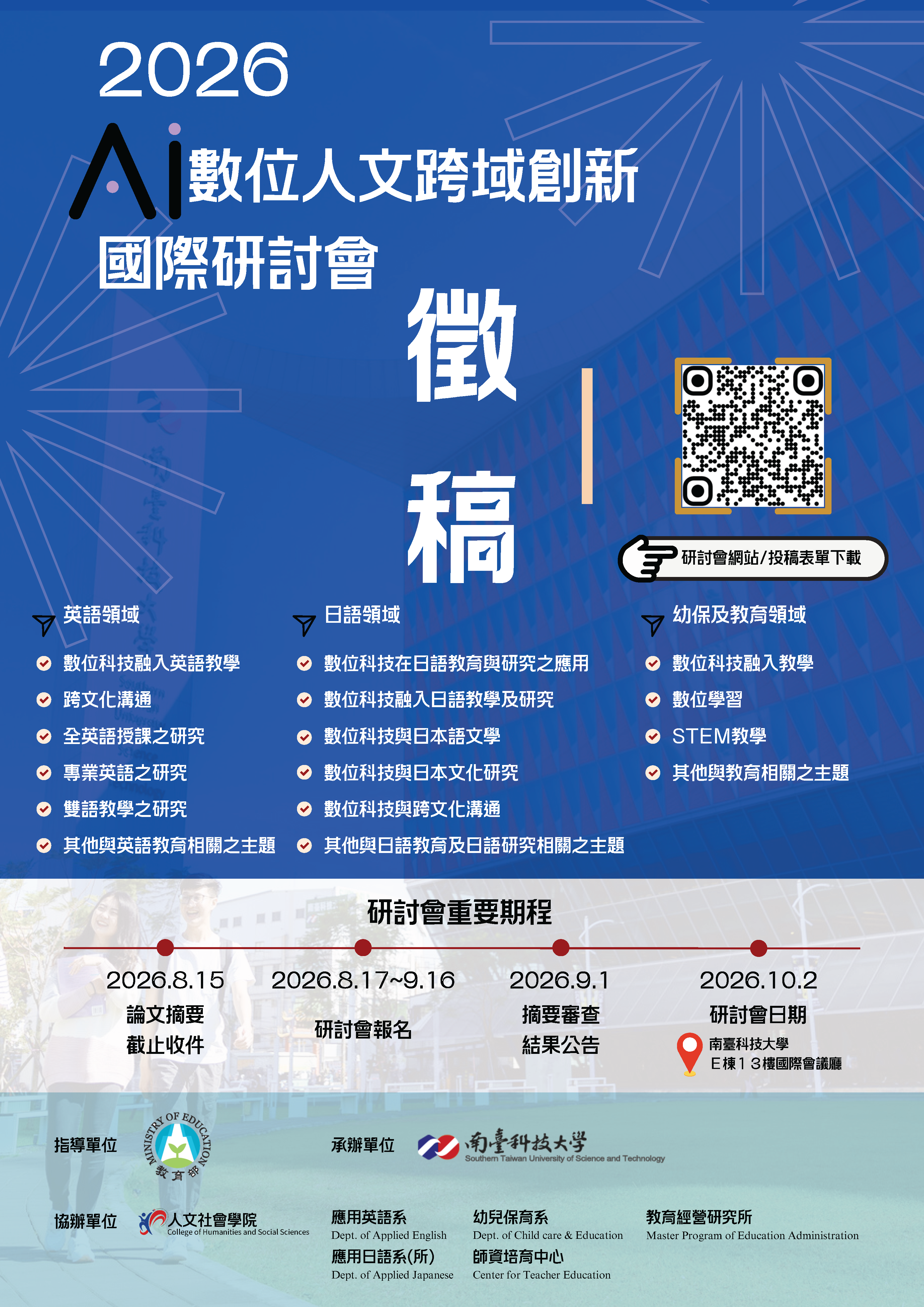 (三)摘要投稿截止日:115年8月15日(星期六)。