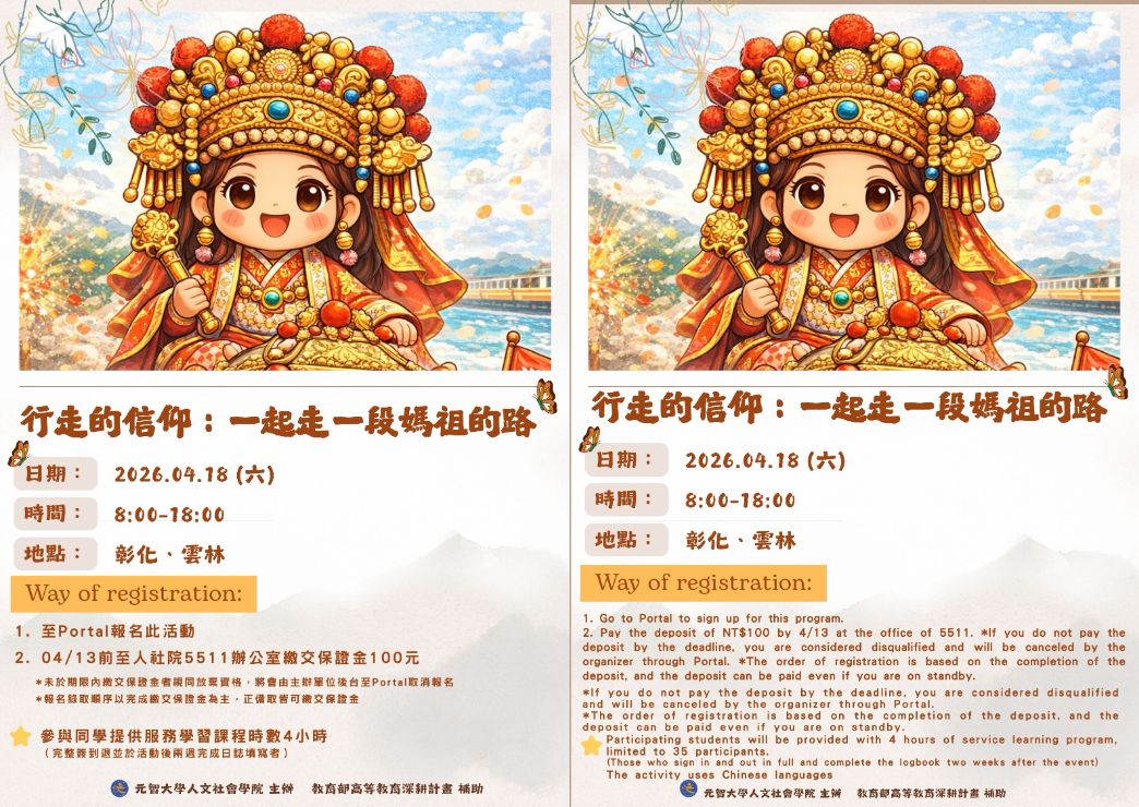 報名連結:https://portalx.yzu.edu.tw/PortalSocialVB/FPage/PageActivityDetail.aspx?Menu=Act&ActID=17028