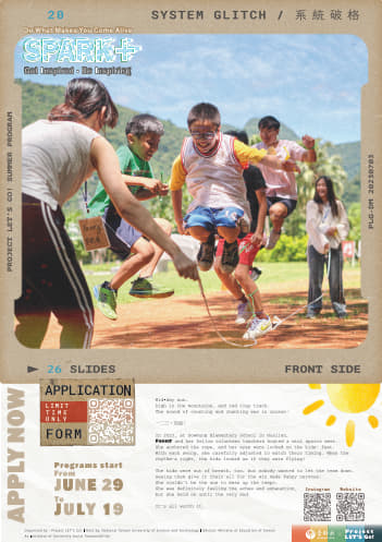 一、「共好 Spark+ : 走在我身邊,成為我的夥伴」計畫為促進優質教育與永續發展,在過程中與在地小校合作成長,也從偏鄉部落孩子們的歡笑與回饋中,共同檢視現今偏鄉教育的普世價值。今年度「英語/創客夏校」(2026 NTUST X Project LET'S Go! Summer Program)竭誠歡迎同學報名成為教育志工,結束後將發放志工證書。