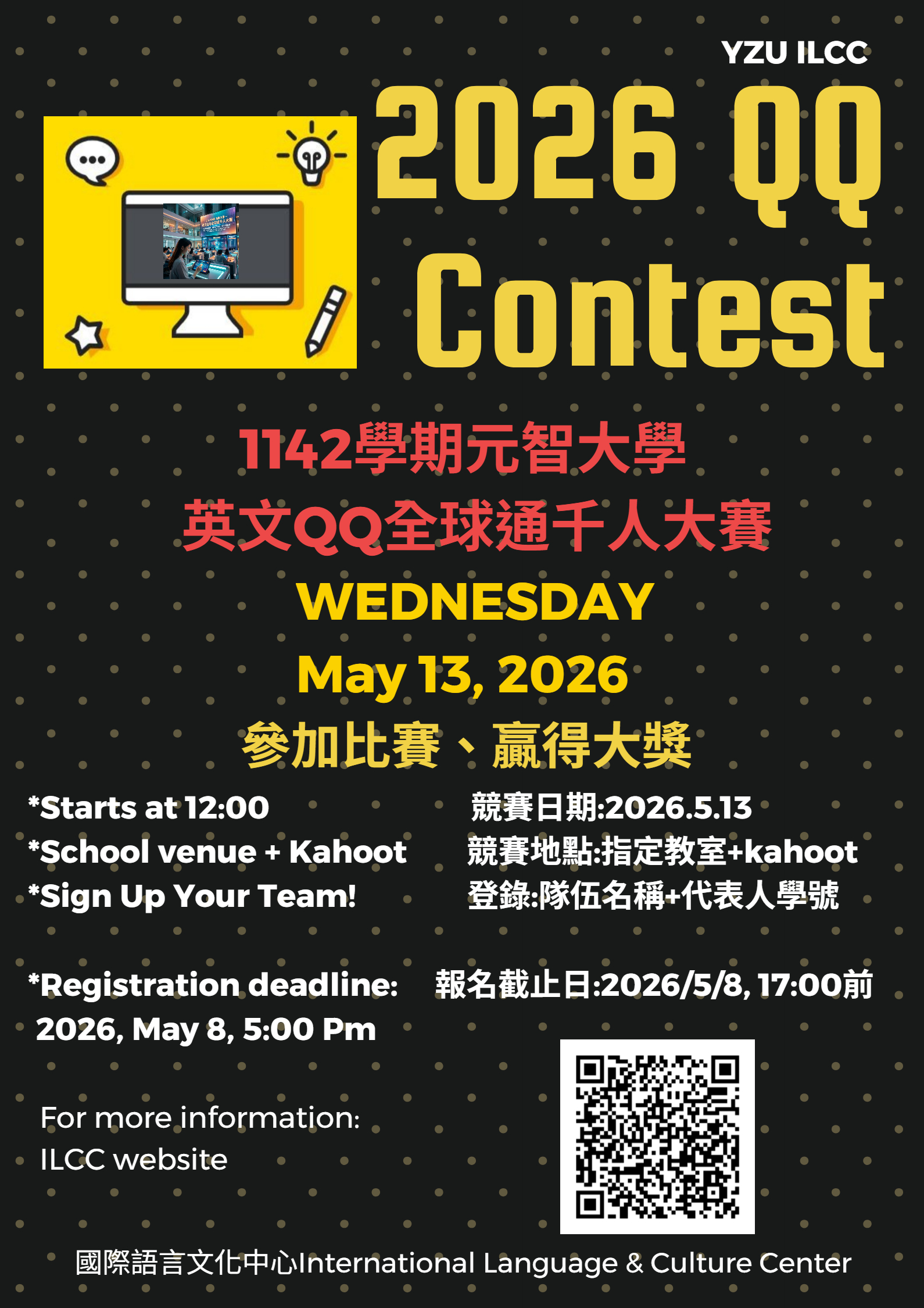 歡迎報名參加115/5/13 (三) 1131學期 元智大學 –2026英文QQ全球通千人大賽