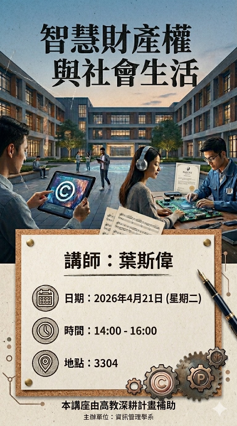 4/21 (二) 「智慧財產權與社會生活」書報討論講座