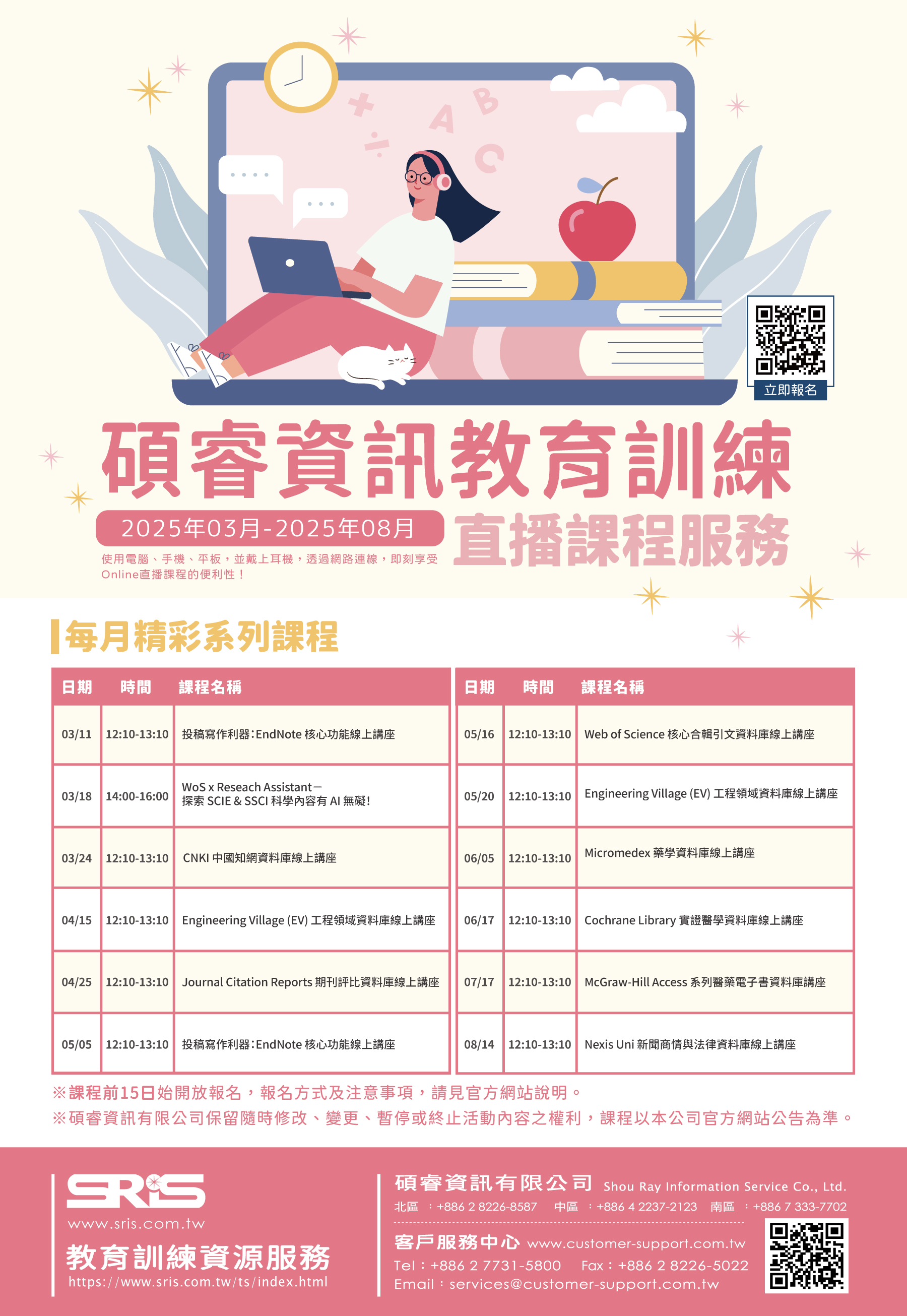 Endnote、JCR、CNKI~2025年上半年(03~08月)教育訓練直播課程,歡迎報名參加