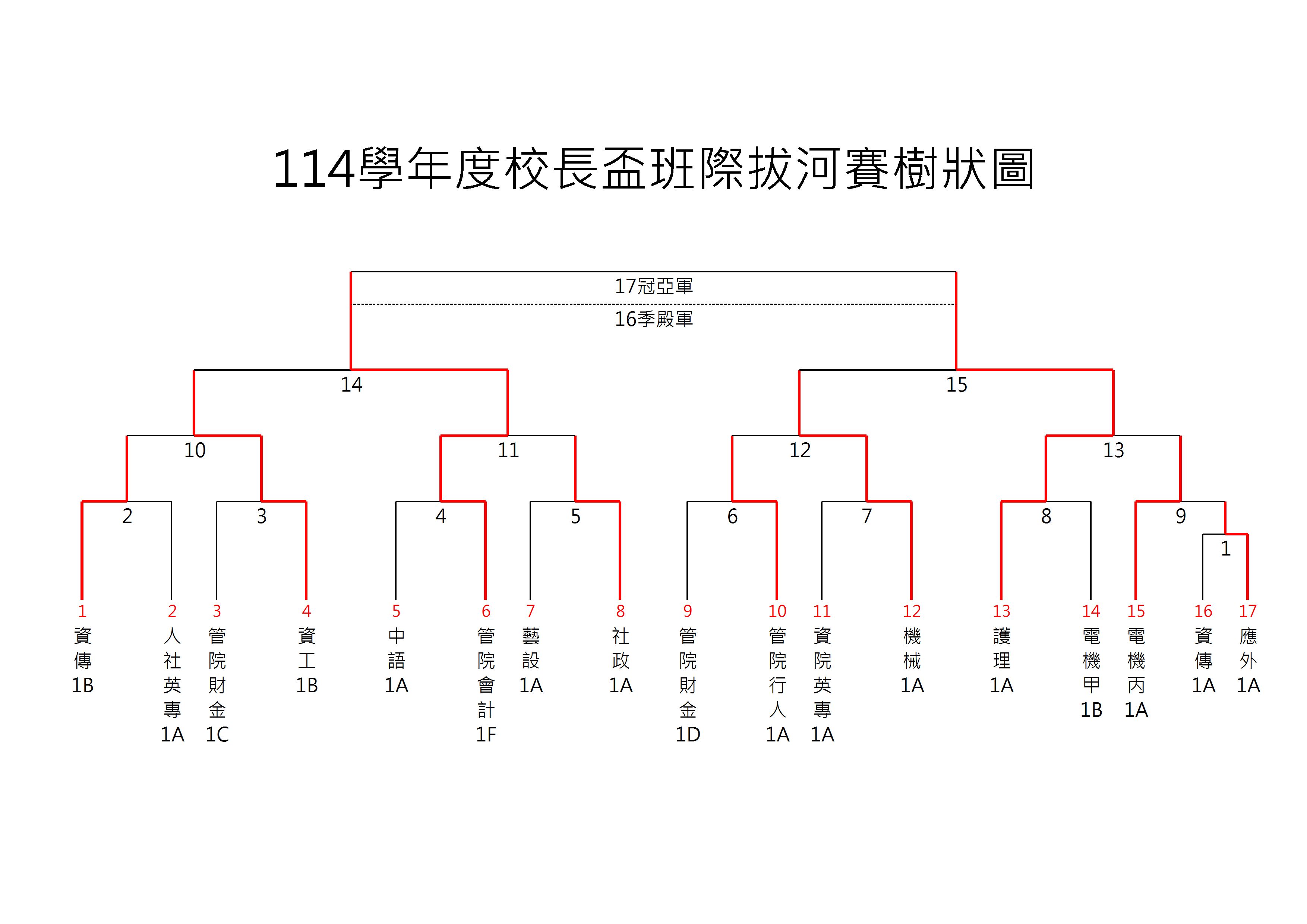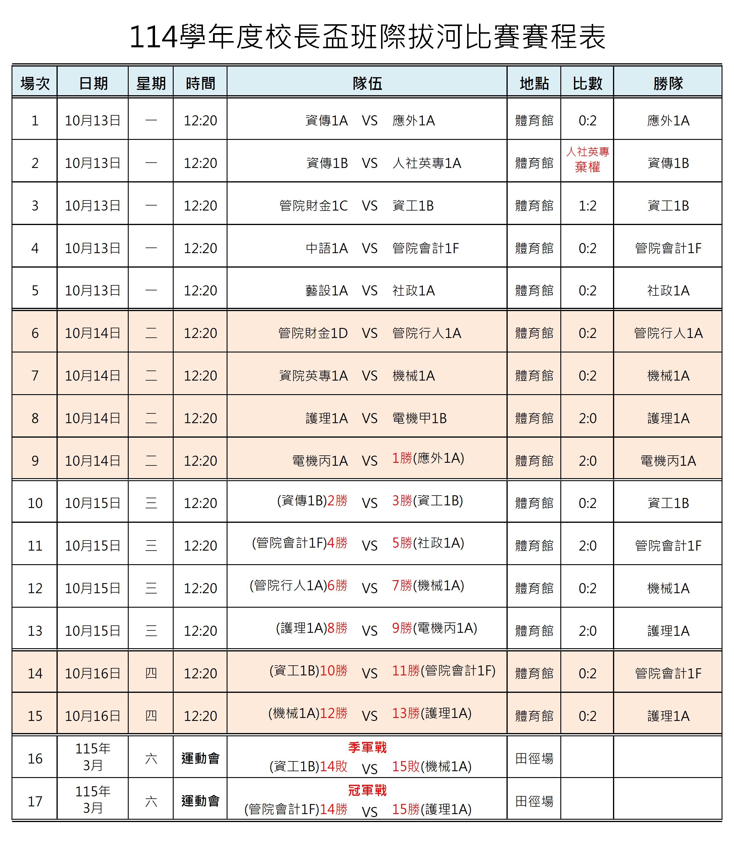 114/10/16(四)校長盃班際拔河比賽成績結果