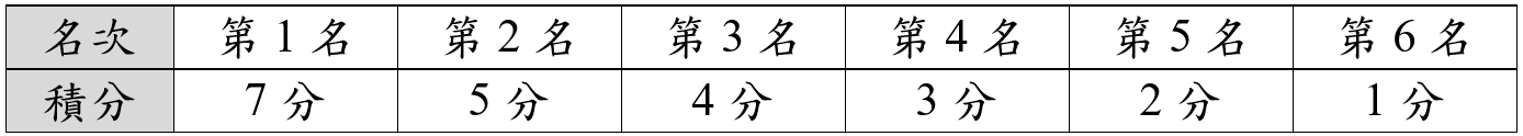 (四)若積分相同時,以其得到第一名項目最多之單位獲勝,若再相等則以次優名次較多者為優先順序,依此類推。