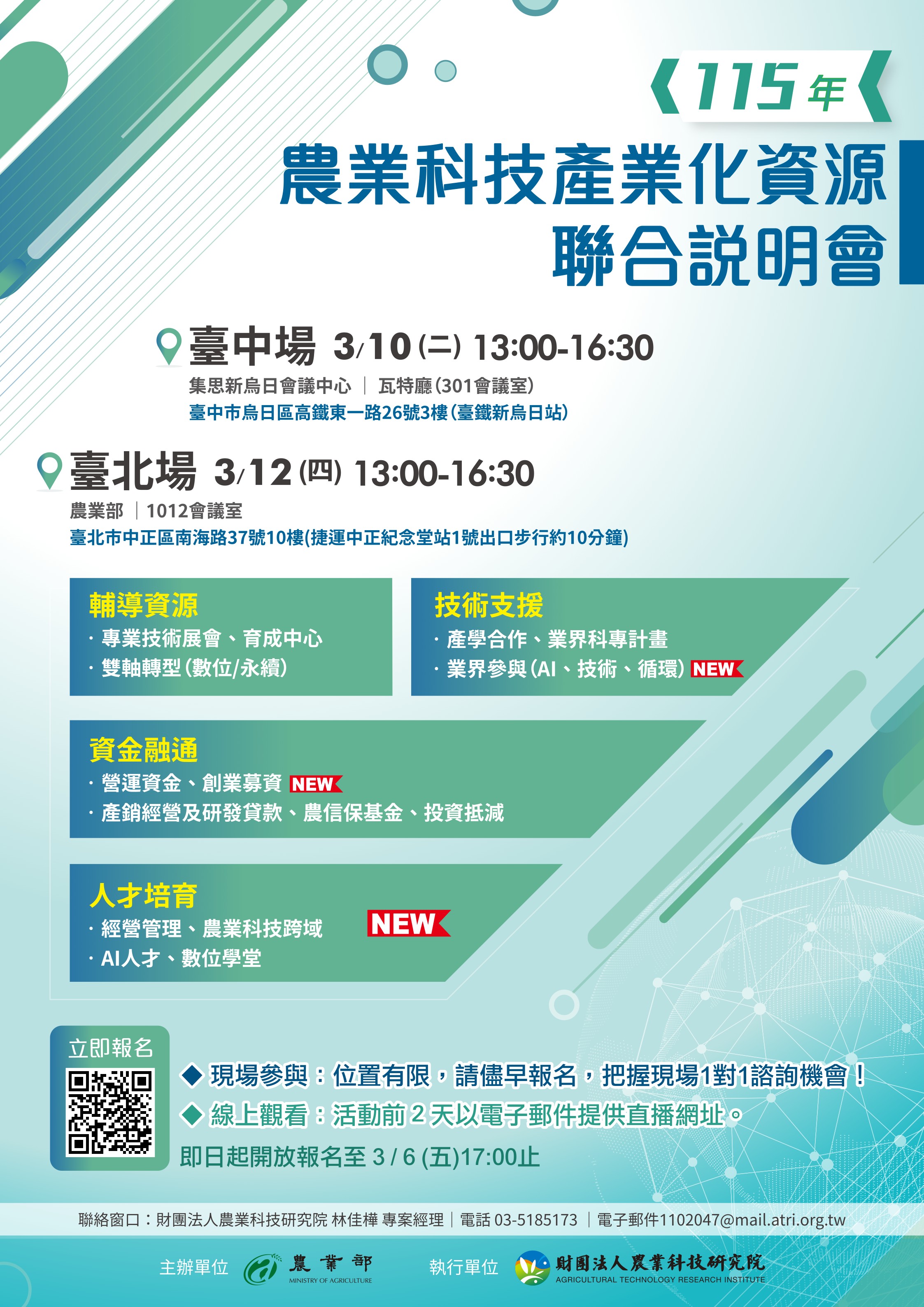 歡迎報名農業部「115年農業科技產業化資源聯合說明會」