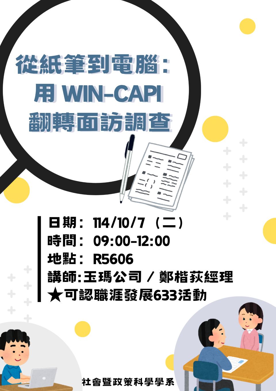 社政系演講「從紙本到筆電:用WIN-CAPI翻轉面訪調查」114/10/07(二)09:10-12:00~R5606教室