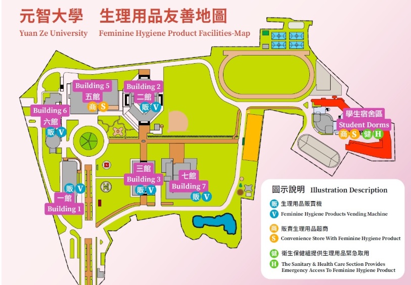此外,五館及宿舍區便利商店亦有販售相關用品;針對緊急需求之學生,衛保組另備有生理用品供免費索取。