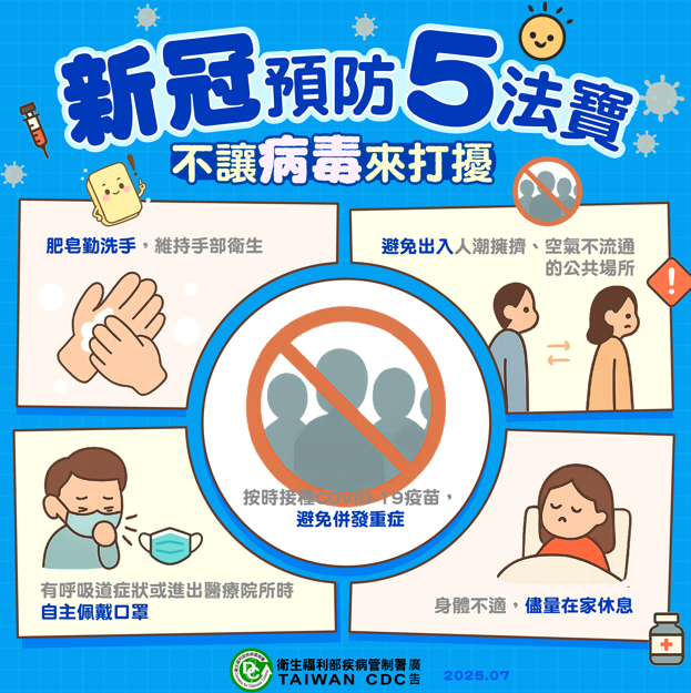情監測資料顯示,全球近期COVID-19陽性率呈下降趨勢,國內疫情處低點;惟疫情流行趨勢變化大,為持續防範夏季可能疫